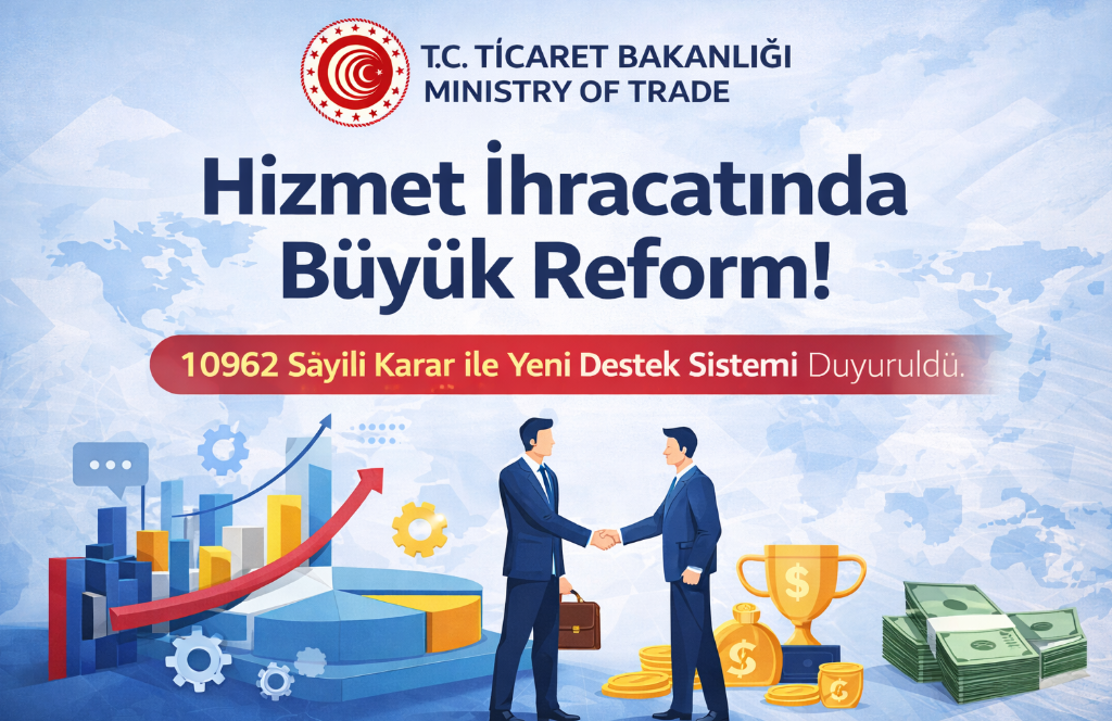 27 Şubat 2026 tarihli Resmî Gazete’de yayımlanan 10962 sayılı Karar ile hizmet ihracatı destek sistemi köklü bir yapısal dönüşüme tabi tutuldu. Yeni düzenleme, dağınık mevzuat yapısını sadeleştirerek tek bir karar altında bütüncül, yenilikçi ve uygulanabilir bir destek modeli oluşturmayı hedefliyor.